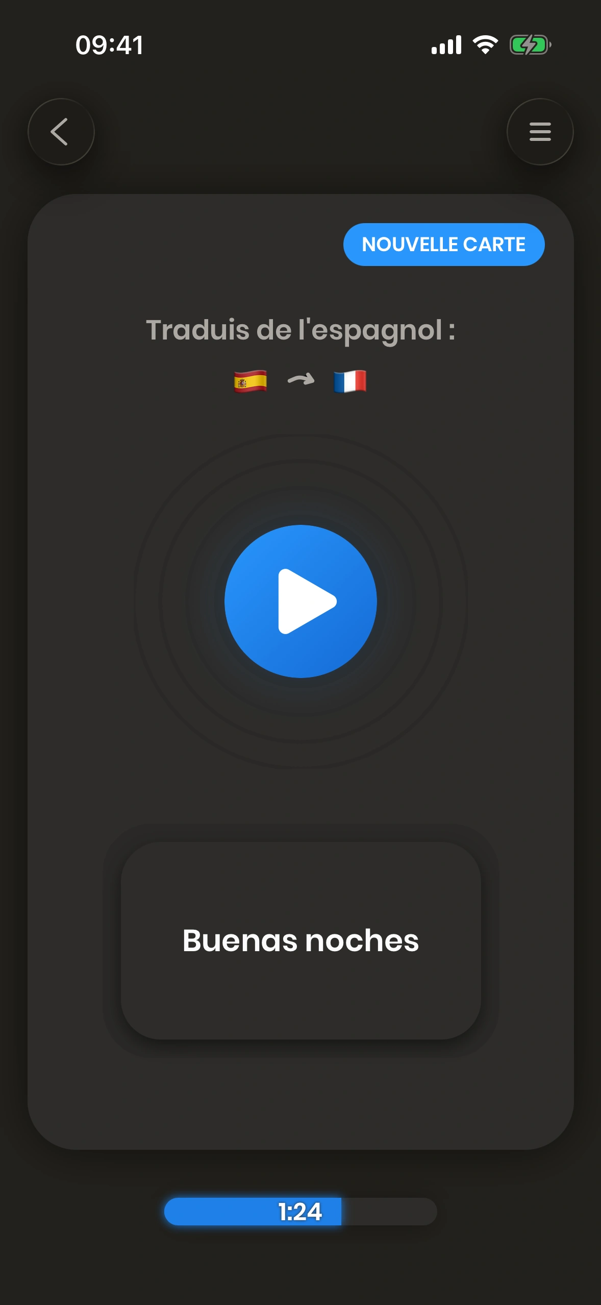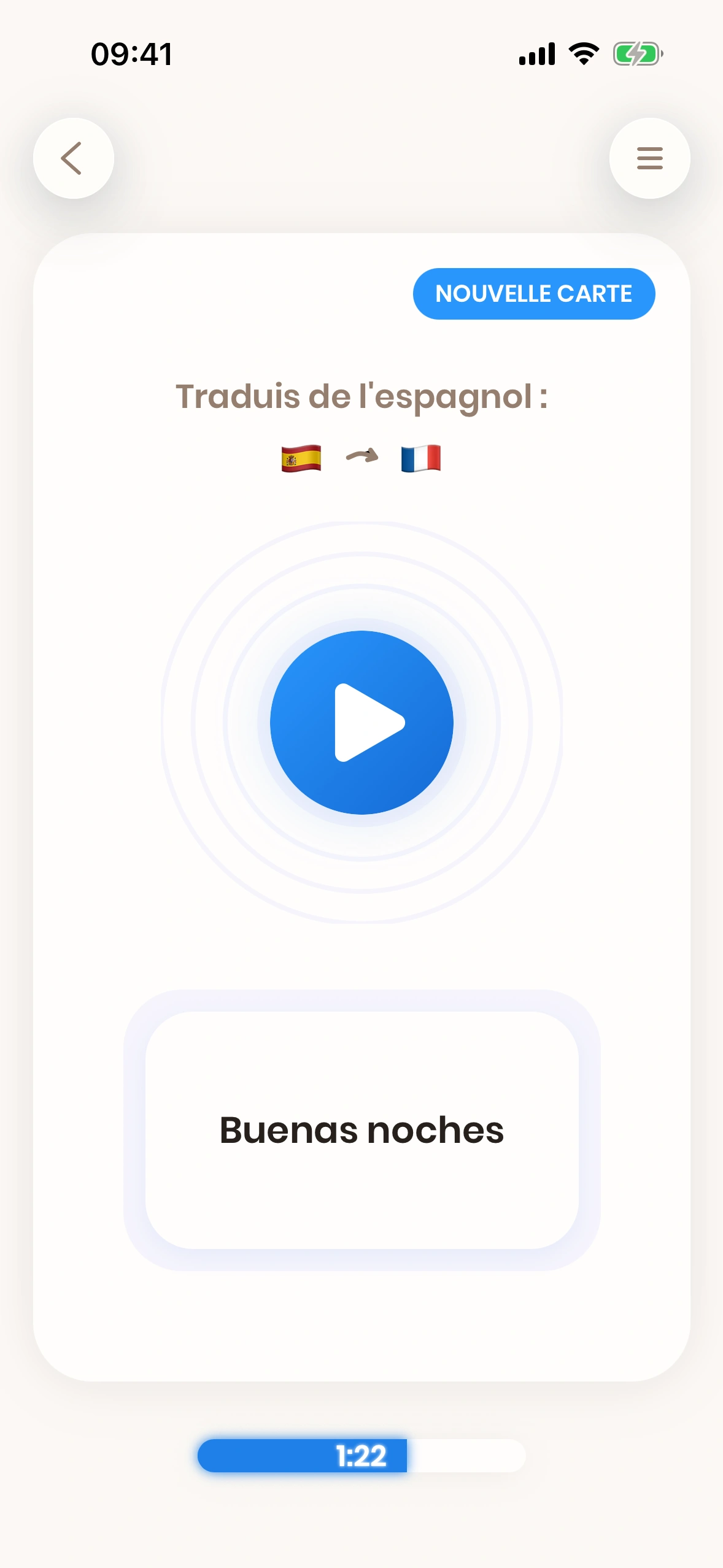 Quand tu apprends une langue, tu ne devrais pas avoir besoin de passer trop de temps à essayer de te souvenir d'un mot ou d'une traduction. Soit tu te souviens du mot en quelques secondes — soit pas. Imagine-toi en train de parler Espagnol à quelqu'un d'autre, et pour chaque mot, tu as besoin de réfléchir quelques secondes — tu n'as clairement pas vraiment maîtrisé ces mots.