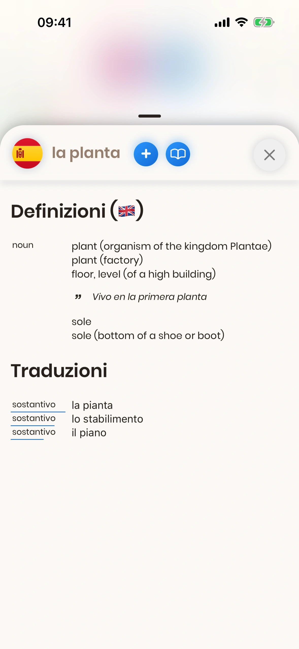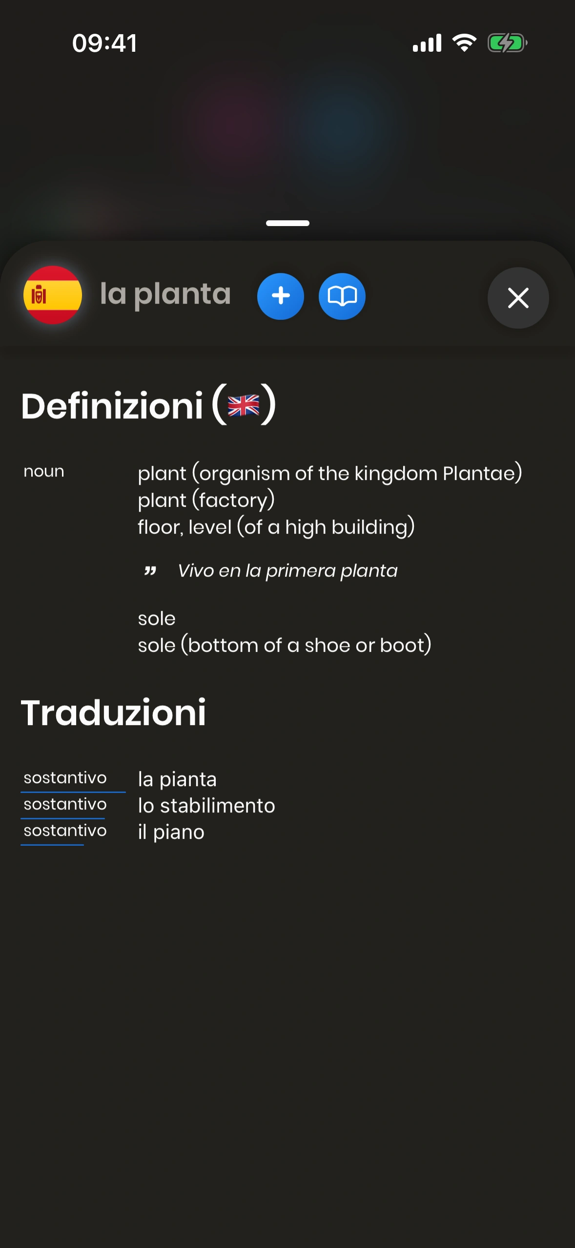 Il modale completo della parola è disponibile per le parole Spagnolo. Il modale della parola per le parole Italiano ha contenuti limitati.