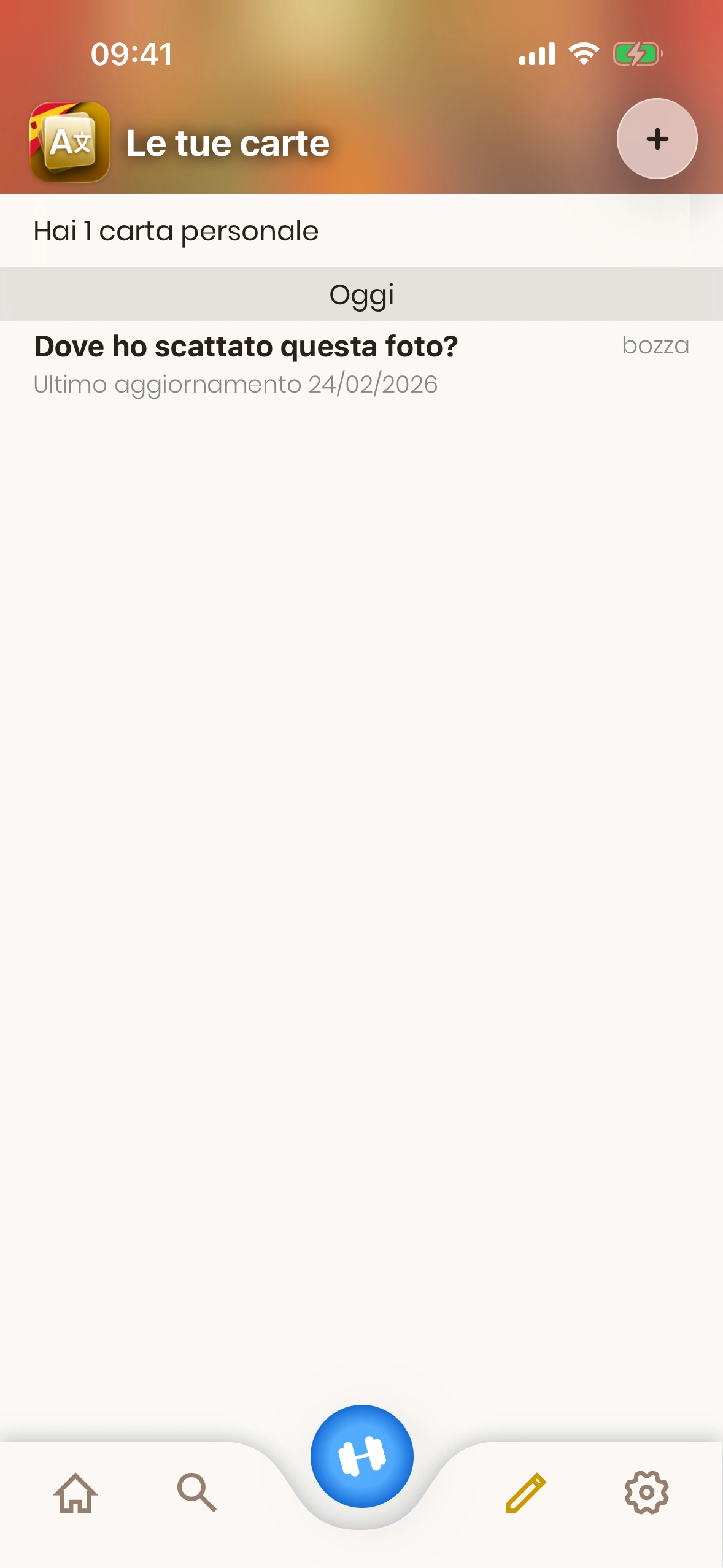2. Pulsante più: Toccalo per aggiungere una nuova carta personale.