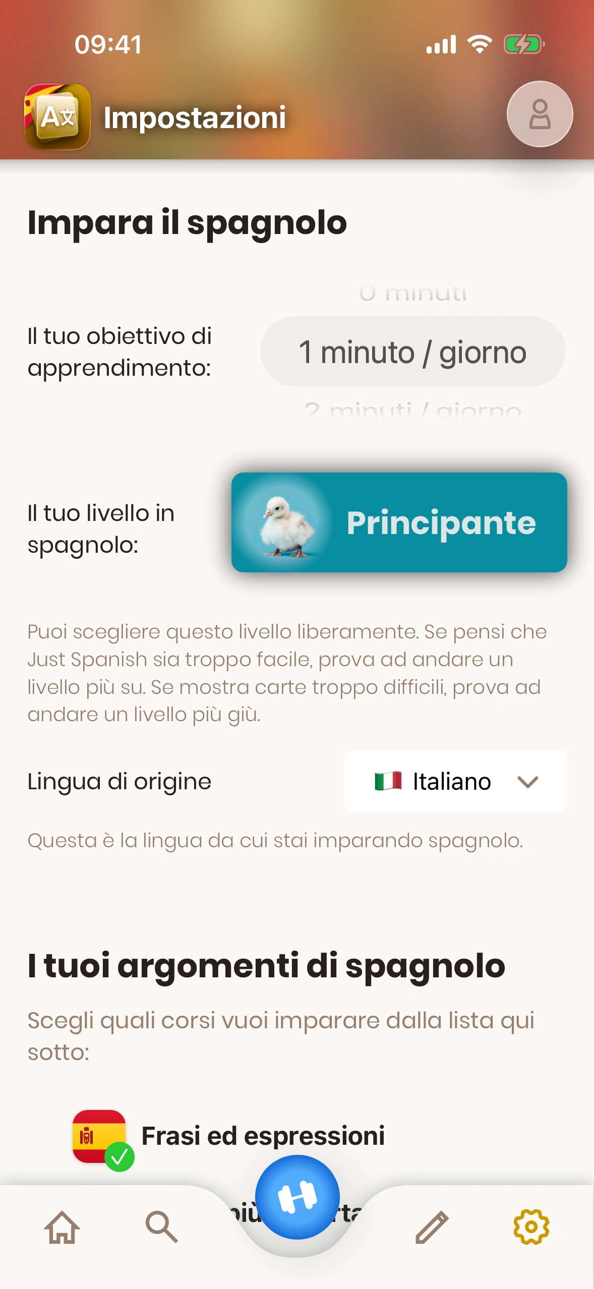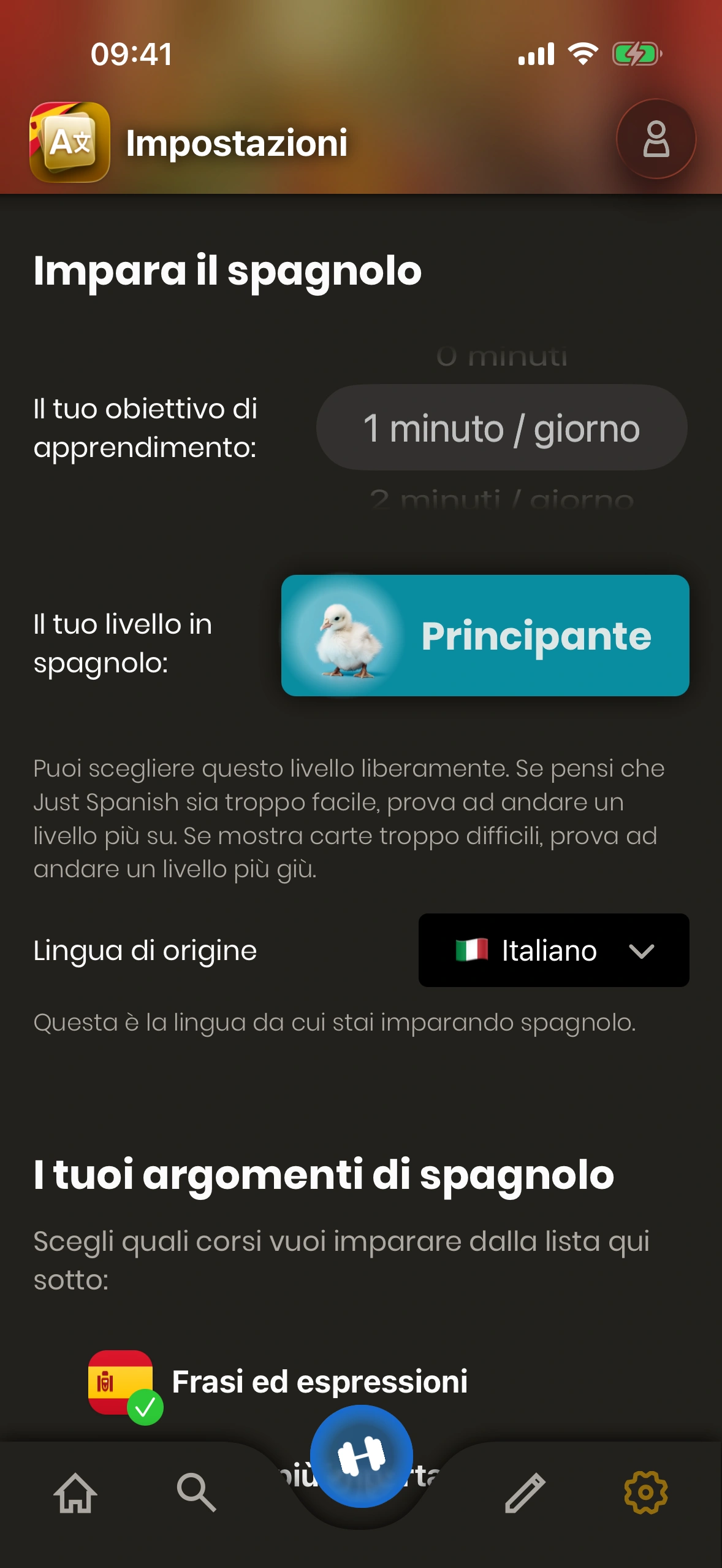 Il numero di minuti che vuoi studiare ogni giorno è l'ingrediente più importante per un progresso rapido. Ovviamente più studi, più velocemente progredirai. Puoi impostare il tuo obiettivo quotidiano nelle impostazioni.